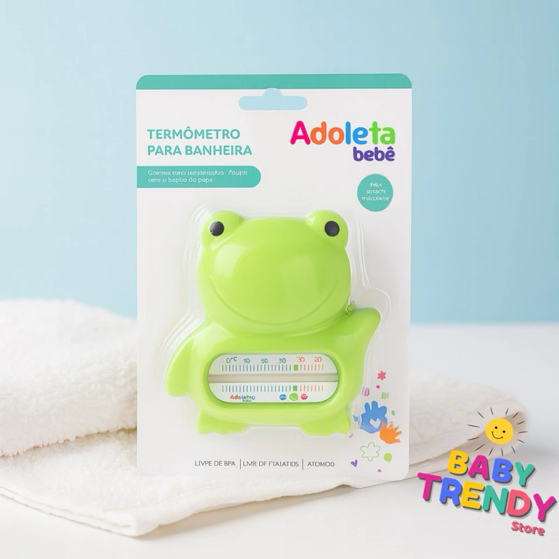 O Termômetro de Banheira Adoleta Bebê foi desenvolvido para garantir uma temperatura segura e agradável durante o banho do seu bebê. Em formato de sapinho, ele une praticidade, segurança e diversão, ajudando os pais a manterem a água sempre na temperatura ideal.